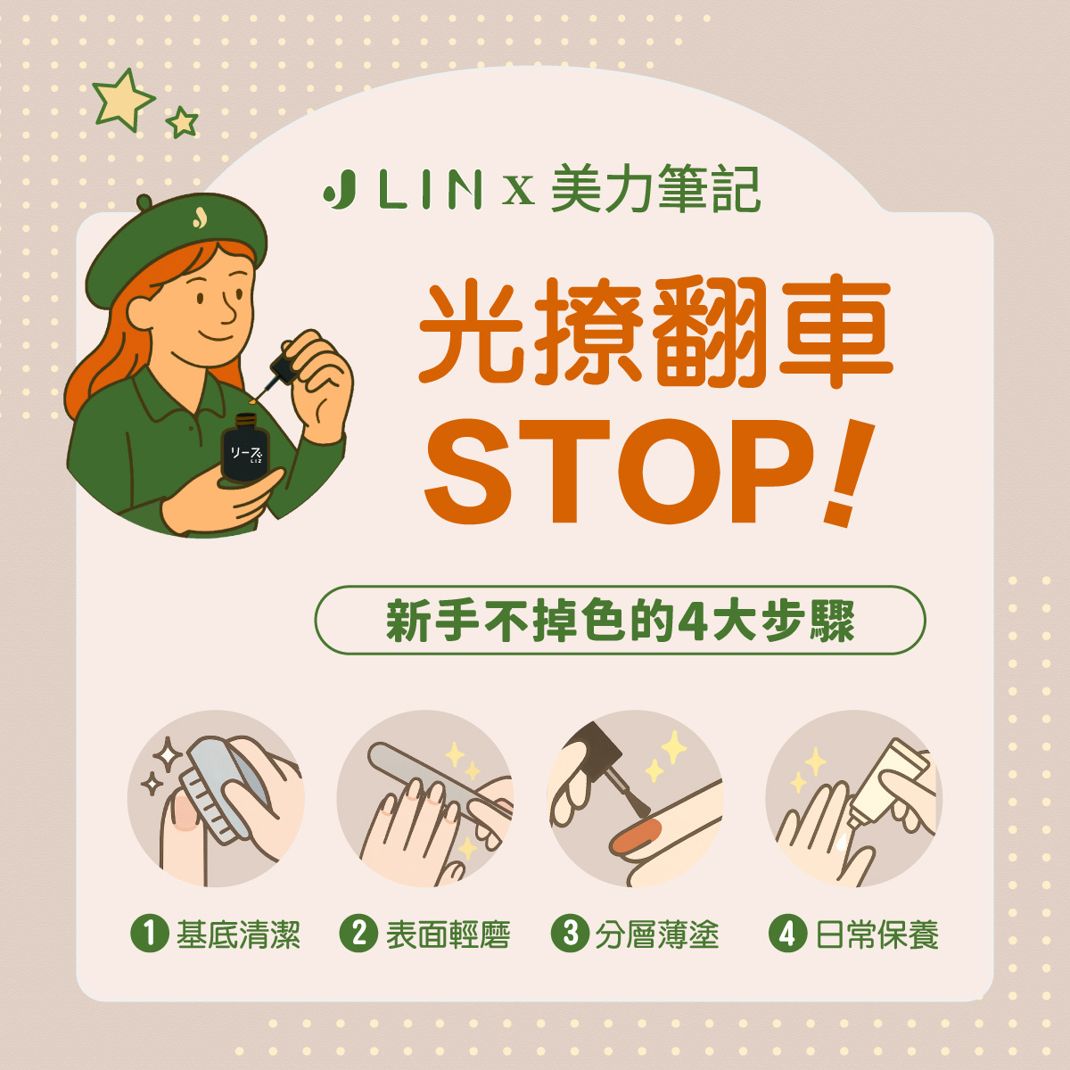 林編編常常聽到女孩們哀號: 「怎麼才擦幾天就掉色了啦~😭」 其實呀~不是光療不耐用,而是小細節沒做到!快跟著林編編筆記下來👇 ✨Step1:基底要乾淨! 👉上色前一定要「去油」 指甲表面若有油脂或護手霜殘留,顏色再美也黏不牢 💡小提醒:酒精棉片擦一擦,指甲就乾爽溜溜~ ✨Step2:表面磨一磨,不是要你用力刮啦😂 輕輕用拋光棒磨一下,讓甲面有點「抓力」,光療才更貼心 ✨Step3:薄塗才是王道 林編編大聲說:千萬不要貪快厚塗! 薄薄一層→照燈→再上一層→照燈 寧願分三層薄上,也不要一次糊成一坨🙅♀️ ✨Step4:日常小保養 擦指緣油、護手霜、避免硬撬 這些小習慣,真的能讓你美甲撐更久💖🎀林編編總結: 乾淨基底+薄塗分層+日常保養=光療持久美美不掉色! 💖想偷懶又要美? 推薦你們林編編最愛的指甲油 一擦就亮、不用封層,新手也能零失手✨ 👉https://jlin.beauty/cXi5e
