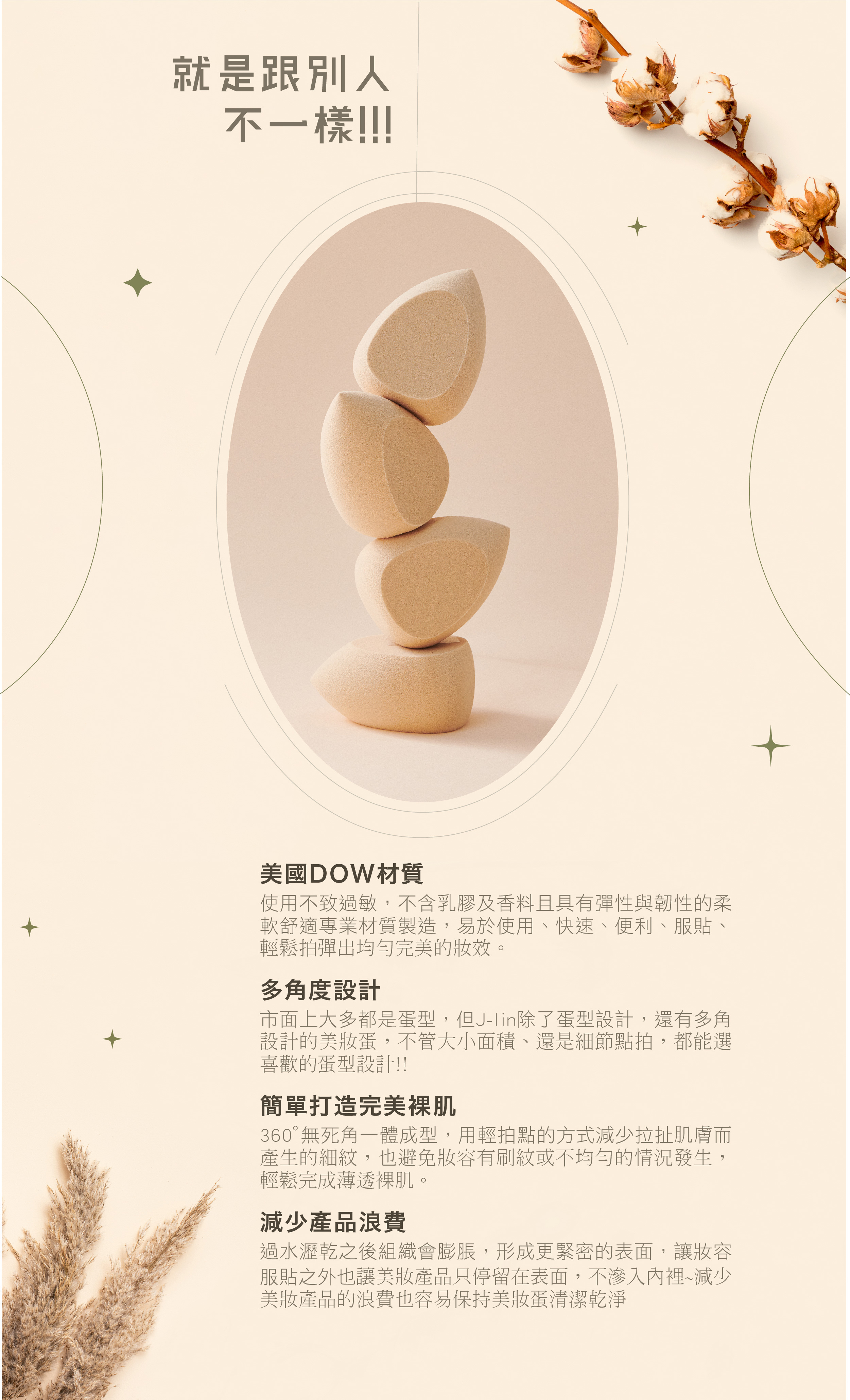 獨特水滴造型兼顧大面積上妝與細節修飾,輕鬆打造無瑕底妝